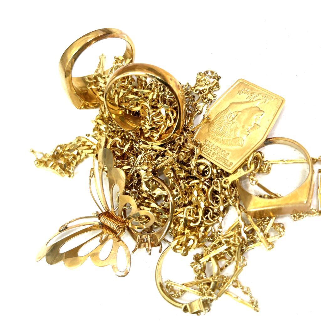 金製品は 壊れた指輪・切れたネックレス・片方だけのピアス・古いデザインの金アクセサリーでもお買取り可能 です。