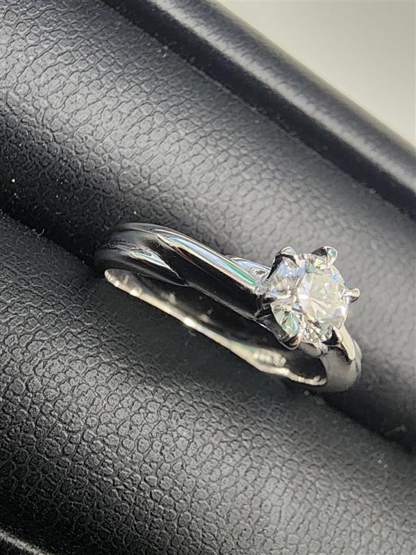 中央にはラウンドカットのダイヤモンドを一粒配した、6本爪のソリティアタイプ